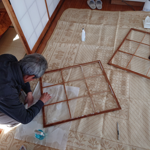 障子張り替え第二段 雪見障子