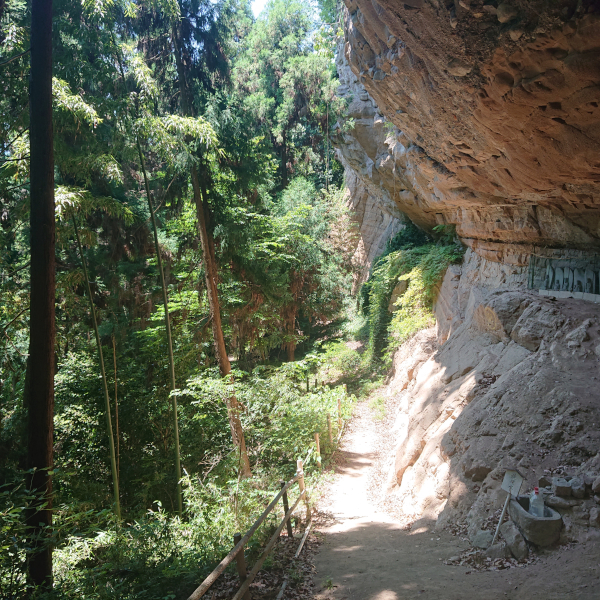 鬱蒼とした山道を歩くと、突然荘厳な岩壁が現れます