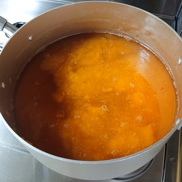 煮立ったら火を弱めてアクを取り、ときどき混ぜながら煮詰める